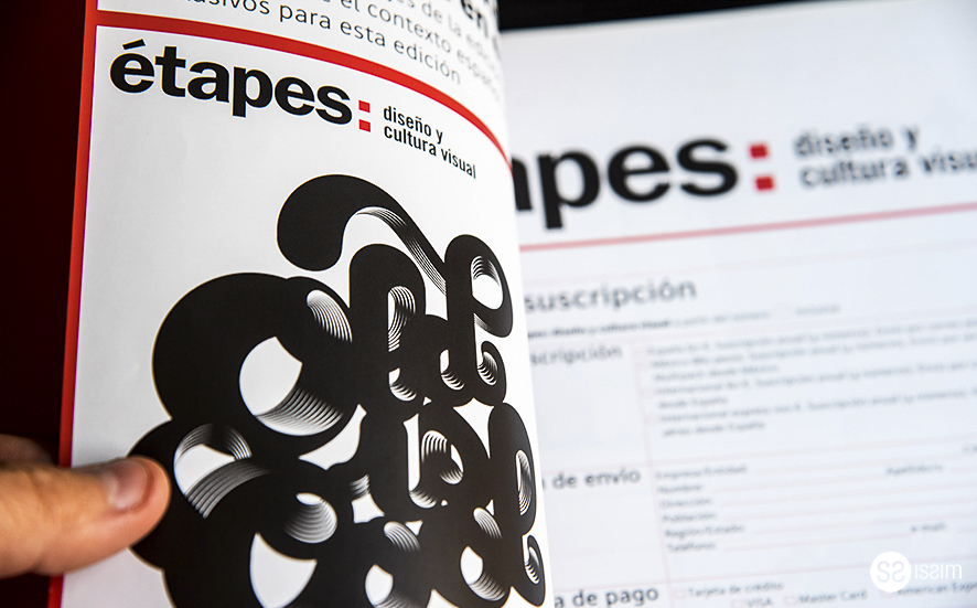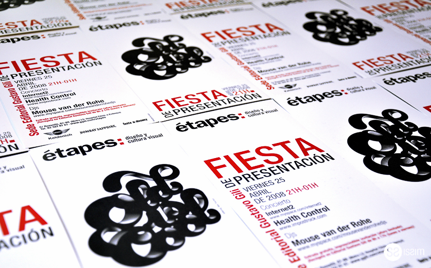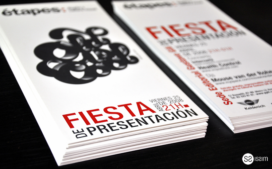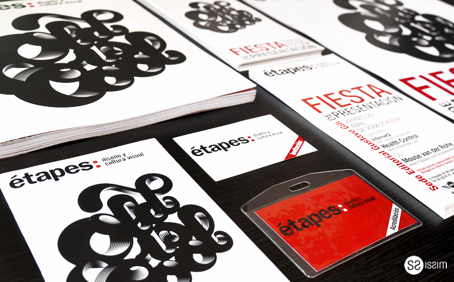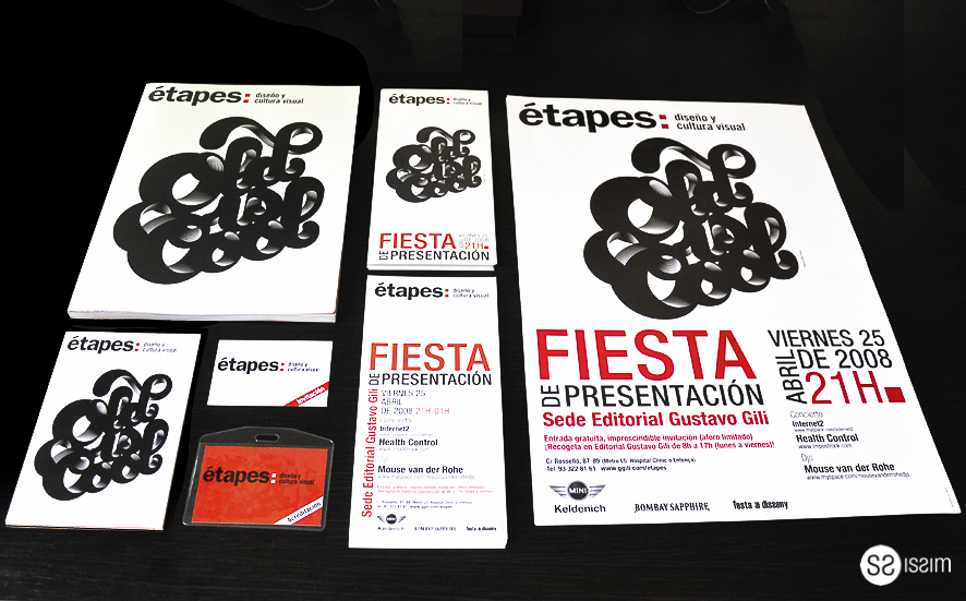 Task: Design the invitation, postesr, flyer, accreditation for the launch event of the graphic design magazine "étapes: Design and Visual Culture" published by Gustavo Gili.